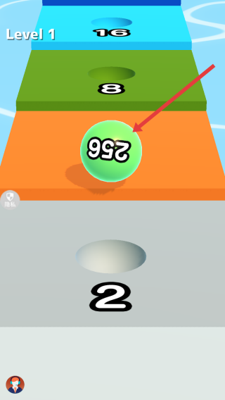 3、繼續(xù)操控合并后數(shù)字更大的小球,帶有數(shù)字標(biāo)識的彩色平臺上移動,要讓小球落到對應(yīng)數(shù)字的平臺區(qū)域,進(jìn)一步推進(jìn)游戲。