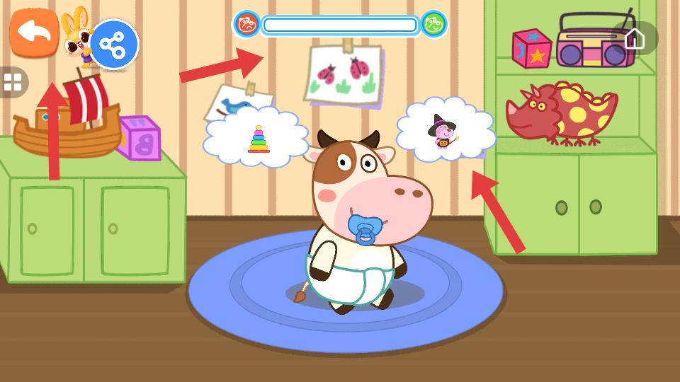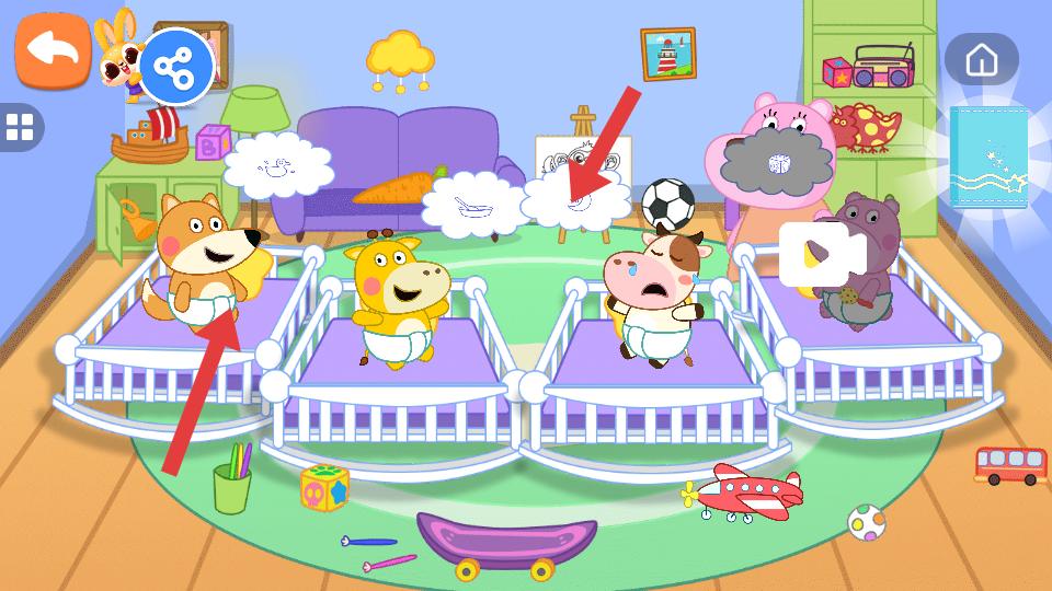 3、當(dāng)單個(gè)寶寶有需求時(shí),會(huì)顯示出想要的物品,如拼圖,裝扮等,按照寶寶的想法,為其提供對應(yīng)的東西。