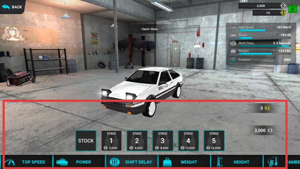 2、在車輛改裝界面可選擇不同階段進行改裝,每個階段需消耗相應(yīng)貨幣,改裝能提升車輛的極速、動力等性能,讓車輛更適合比賽。