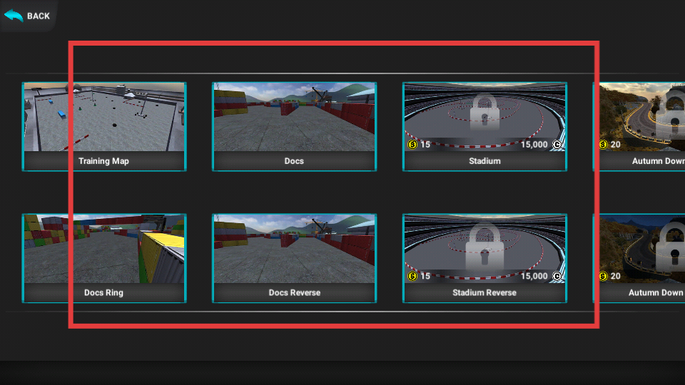 3、進入地圖選擇界面,有TrainingMap、Docs等不同地圖,可根據(jù)自身水平和喜好選擇地圖,解鎖的地圖能帶來不同的駕駛體驗和挑戰(zhàn)。