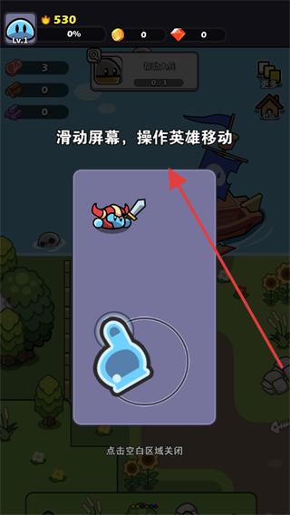 1、進(jìn)入游戲看到有滑動(dòng)屏幕,操作英雄移動(dòng)提示的界面,滑動(dòng)屏幕,操控英雄在場景中移動(dòng),準(zhǔn)備展開冒險(xiǎn)救援行動(dòng)。