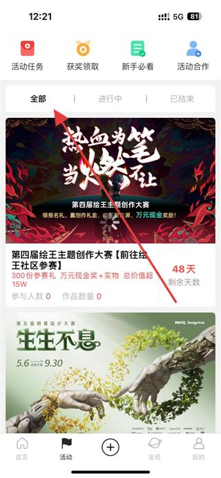 3、進(jìn)入活動(dòng)頁面查看全部、進(jìn)行中已結(jié)束的活動(dòng)分類,如第四屆給王主題創(chuàng)作大賽等,了解活動(dòng)規(guī)則與獎(jiǎng)勵(lì),準(zhǔn)備參與創(chuàng)作大賽,展示創(chuàng)作才華。