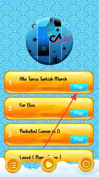 1、進(jìn)入游戲看到帶有不同音樂選項(xiàng)的界面,選擇其中一首音樂點(diǎn)擊對應(yīng)的Play按鈕,進(jìn)入該音樂的節(jié)奏闖關(guān)場景。
