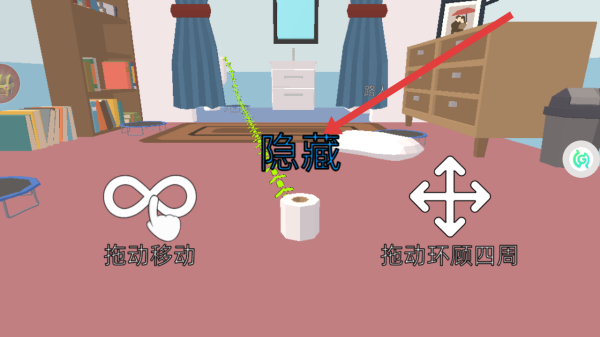 1、進(jìn)入游戲場(chǎng)景,利用拖動(dòng)移動(dòng)和拖動(dòng)環(huán)顧四周操作,尋找合適的隱藏地點(diǎn),準(zhǔn)備躲避。