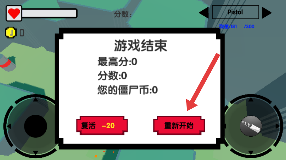 4、若游戲結(jié)束,可選擇復活或重新開始,再次挑戰(zhàn),爭取在與僵尸的戰(zhàn)斗中取得更好的成績。
