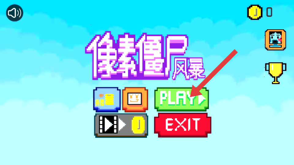 1、進入游戲,點擊PLAY,開啟像素僵尸世界的冒險之旅,準備迎接與僵尸的戰(zhàn)斗。