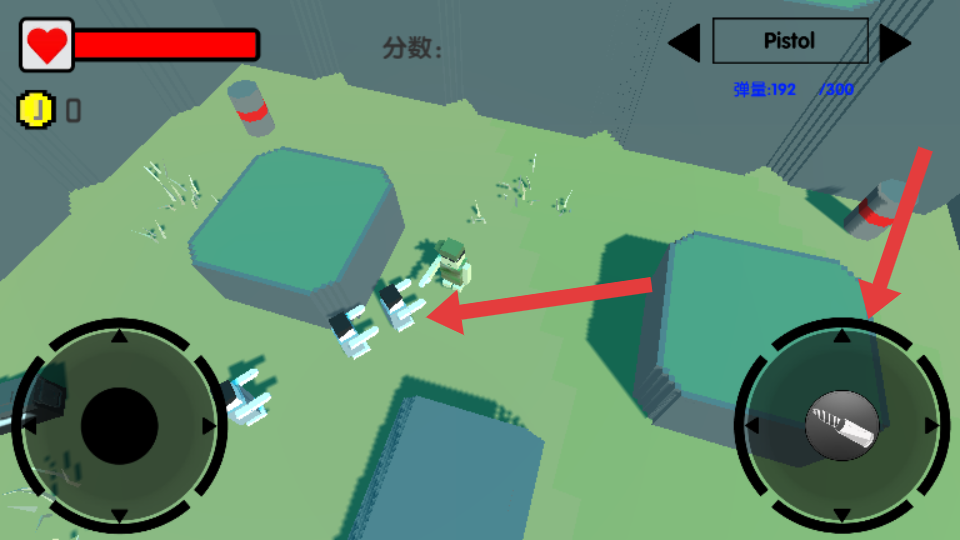 3、在游戲場景里,操控角色移動,使用武器攻擊僵尸,躲避僵尸的進攻,努力獲取更高分數(shù)。