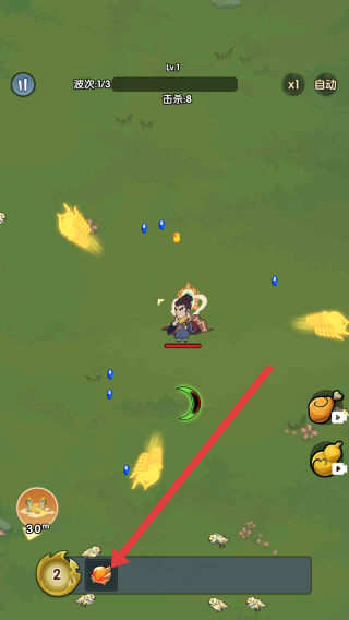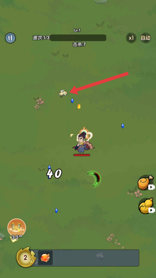 3、進入戰(zhàn)斗操控角色攻擊場景中的白色小怪物,每次攻擊會顯示傷害數(shù)值,同時要躲避怪物的攻擊,積累擊殺數(shù)。