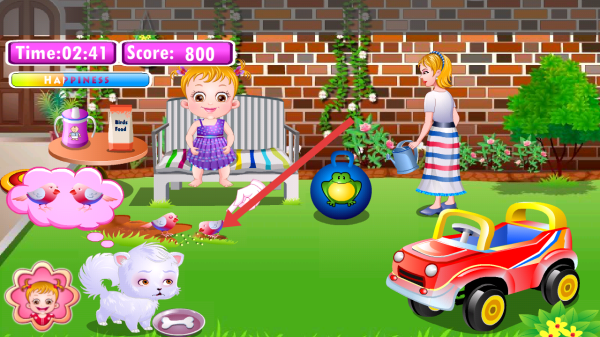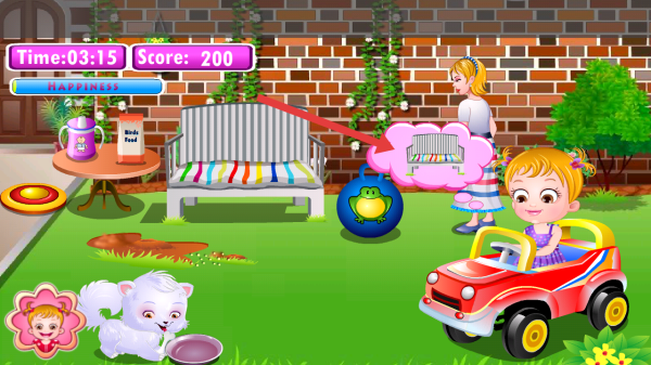 4、持續(xù)滿足Baby Hazel和場景中其他元素的需求,隨著時(shí)間推進(jìn),不斷積累分?jǐn)?shù),提升幸福感數(shù)值,順利完成游戲關(guān)卡。