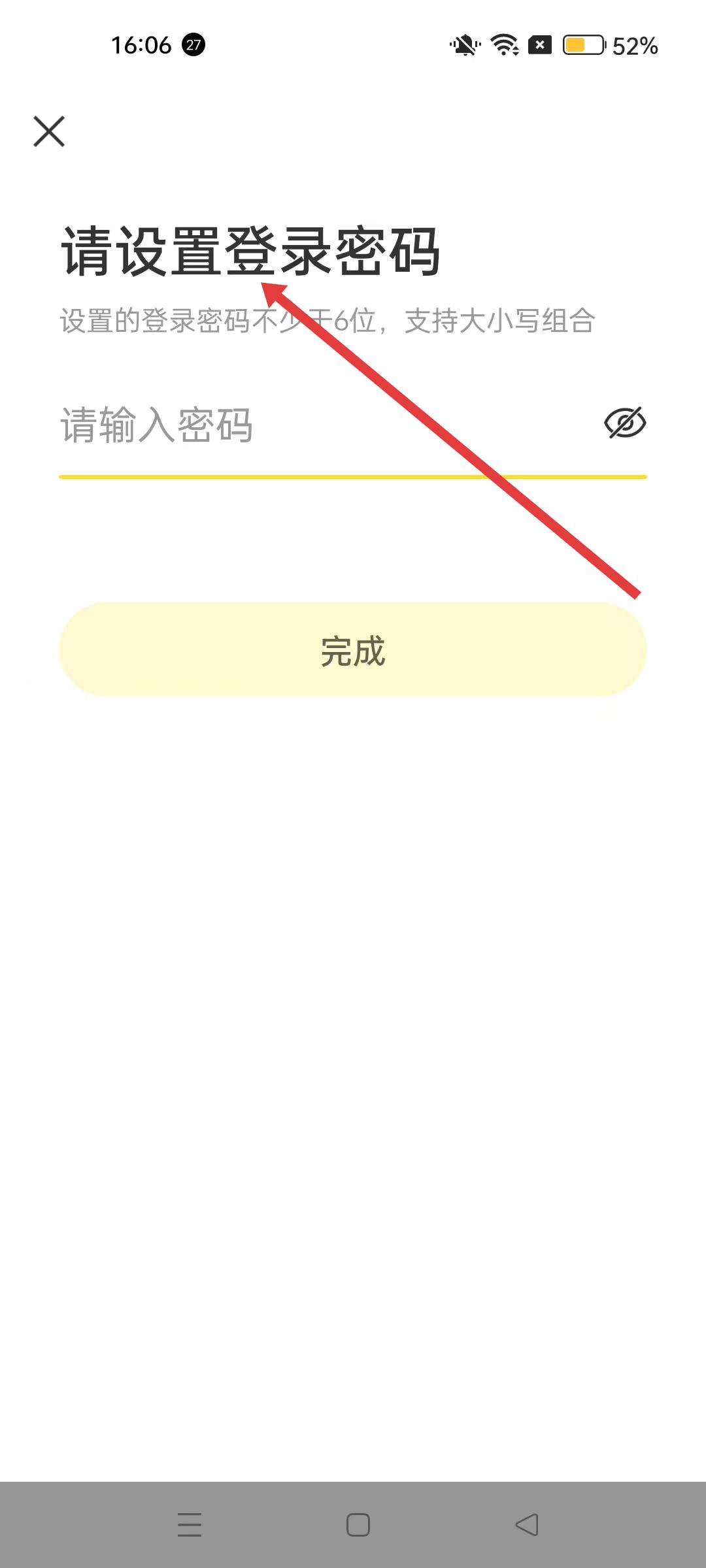 2、請(qǐng)?jiān)O(shè)置登錄密碼頁(yè)面,按照要求設(shè)置不少于6位、支持大小寫(xiě)組合的登錄密碼,點(diǎn)擊完成,完成賬號(hào)登錄流程。