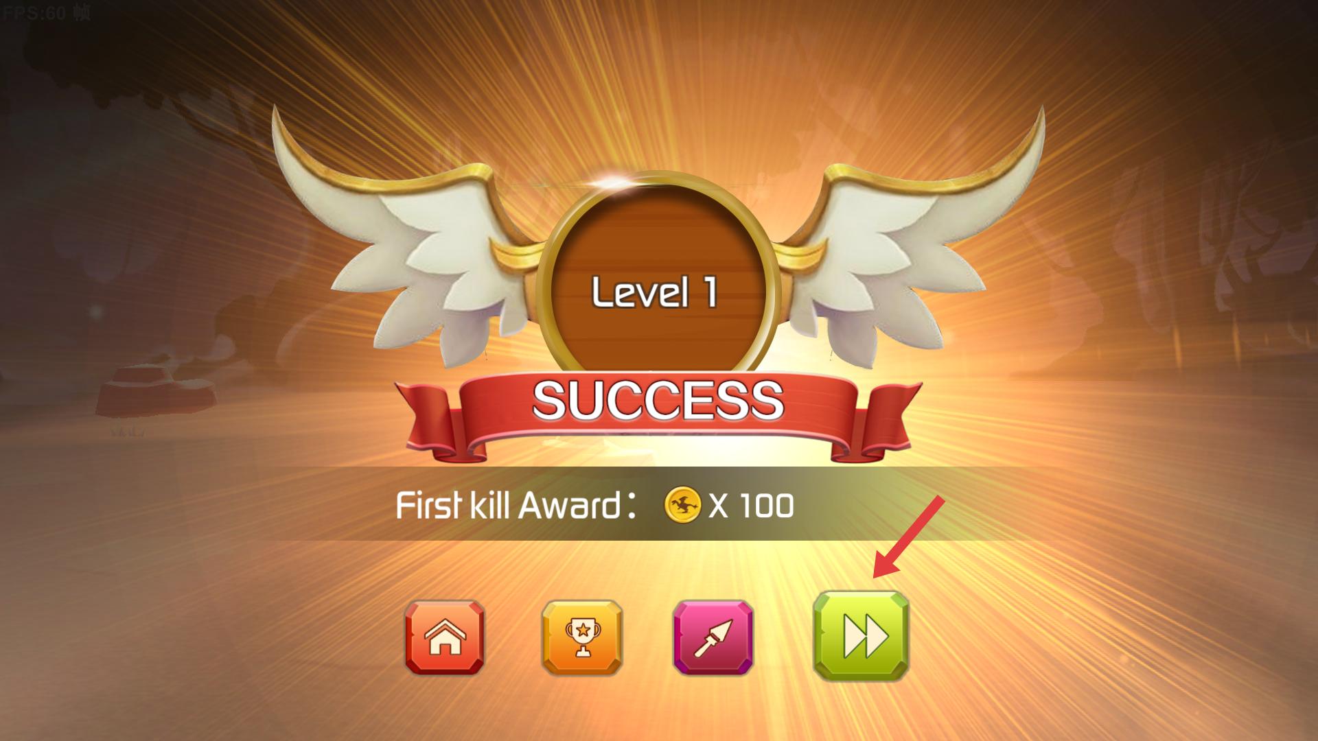 3、成功通關(guān)后,點(diǎn)擊綠色箭頭按鈕,進(jìn)入下一關(guān),積累戰(zhàn)斗經(jīng)驗(yàn),用獎(jiǎng)勵(lì)強(qiáng)化角色與野豬,提升戰(zhàn)力。