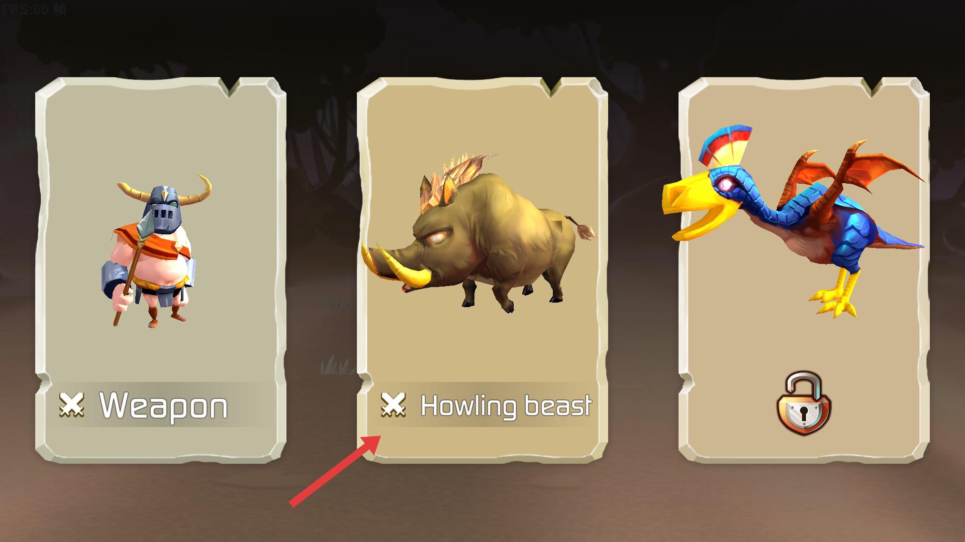 1、玩家下載游戲登入游戲頁(yè)面后,選擇Howling beast野豬卡牌,即可進(jìn)入戰(zhàn)斗開始屬于你們的挑戰(zhàn)之旅。