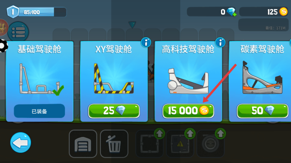 4、游戲當(dāng)中可進(jìn)入駕駛艙選擇界面,能用金幣或鉆石解鎖不同駕駛艙,更換駕駛艙能改變賽車性能,提升駕駛體驗(yàn)。