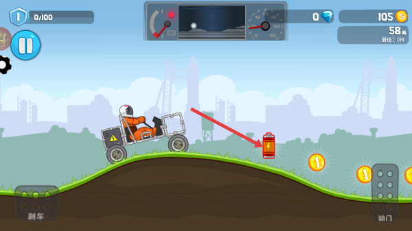 2、行駛過程中,會(huì)遇到電池道具,駕駛賽車獲取電池,能為賽車提供能量,助力山地更好地行駛。