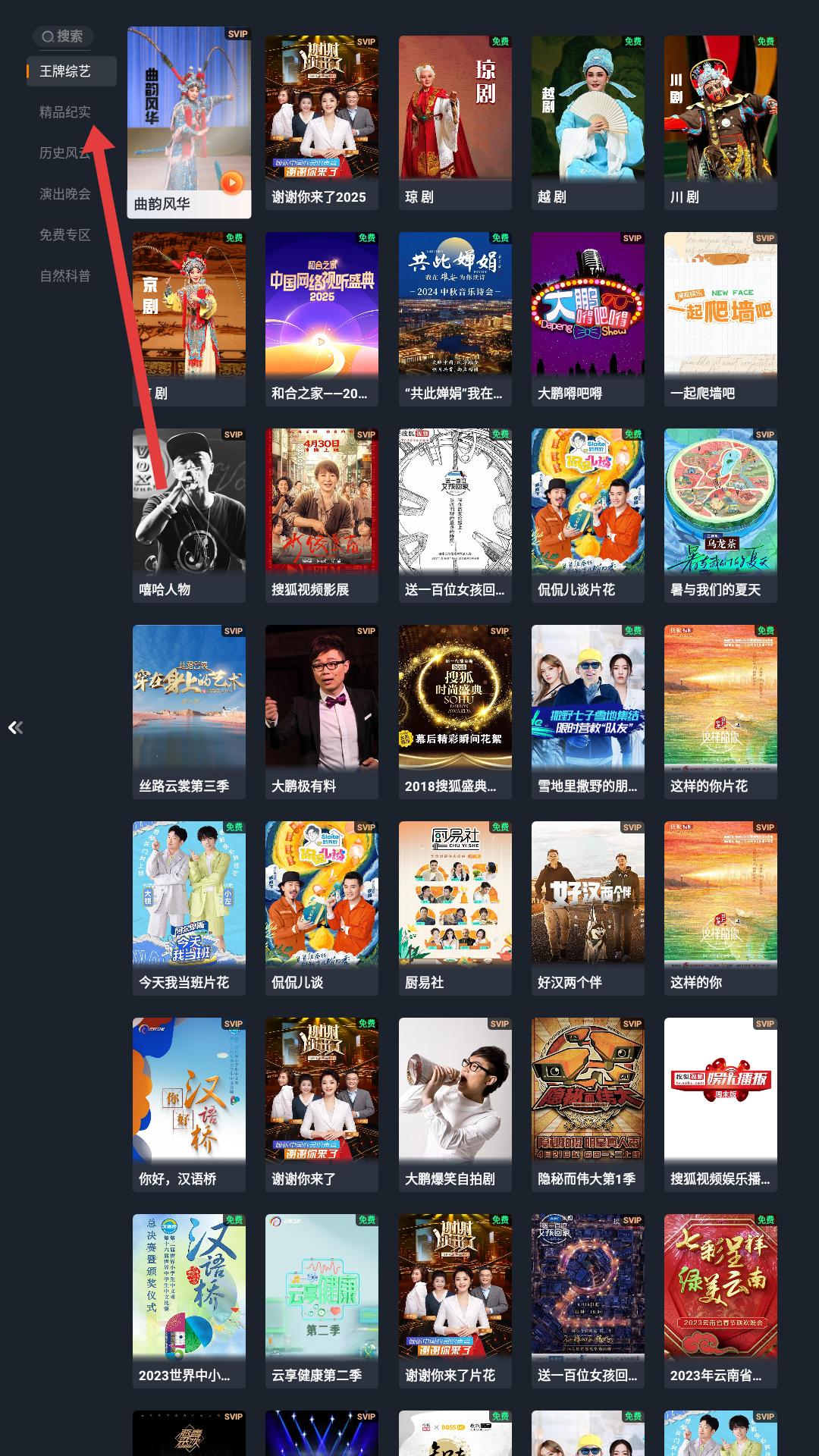 2、在主界面左側(cè)分類欄,滑動屏幕查找精品紀實板塊,點擊進入,瀏覽曲韻風華等紀實節(jié)目列表,了解節(jié)目詳情。
