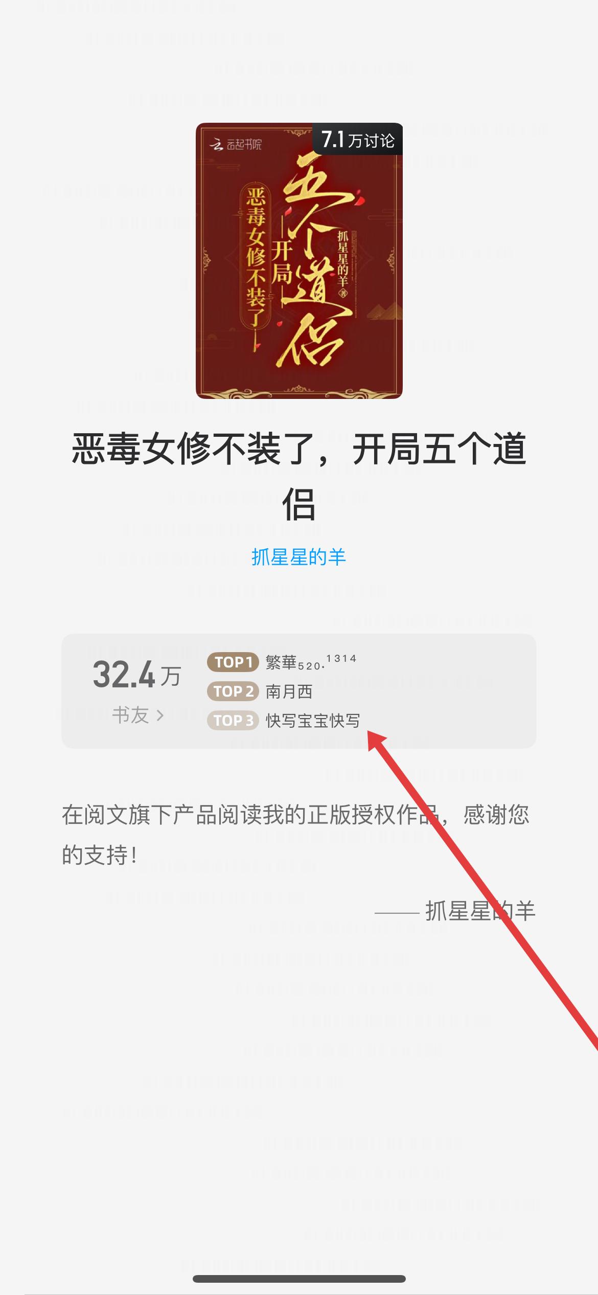 4、試讀時(shí),還能看到小說的討論量、書友數(shù)等數(shù)據(jù),感受書籍的受歡迎程度,沉浸閱讀中。