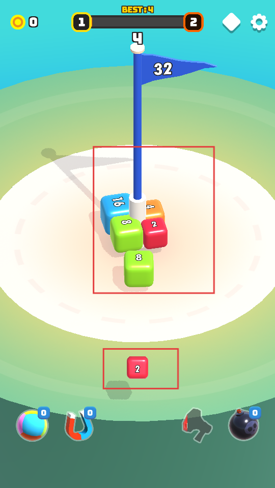 2、在游戲區(qū)域,操控帶有數(shù)字的方塊移動(dòng)、碰撞,讓相同數(shù)字的方塊合并,生成更大數(shù)字的方塊。