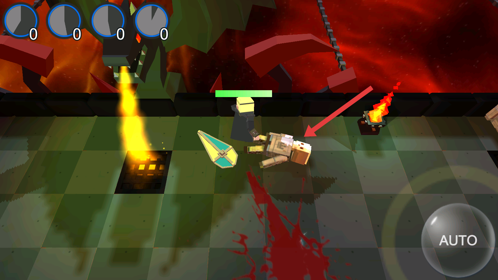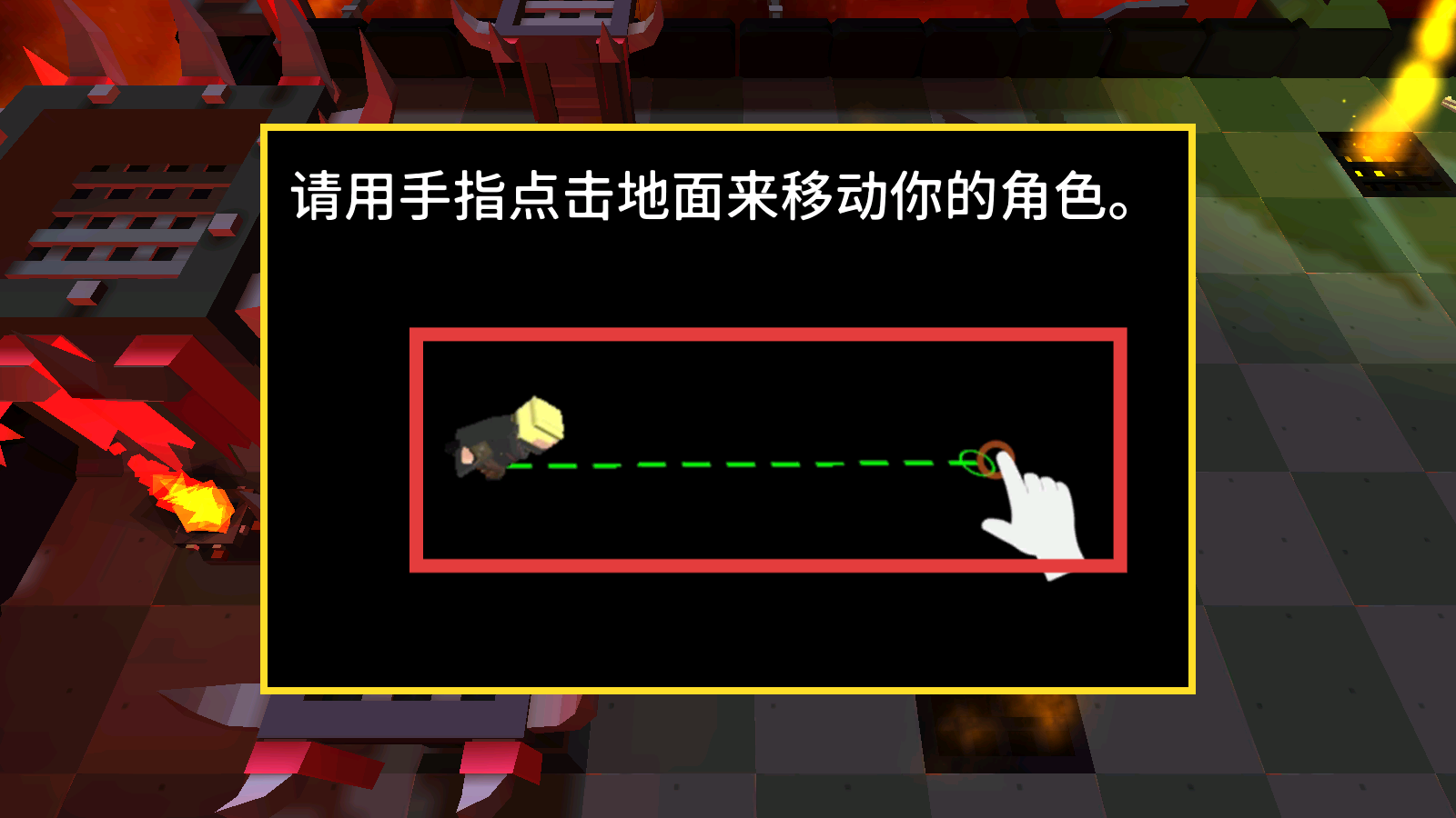 1、在游戲中通過用手指點擊地面的方式來操控角色移動,讓角色在充滿火焰等危險元素的場景中,靈活調(diào)整位置。