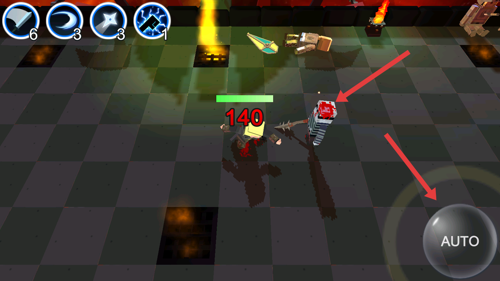 2、點擊屏幕右下角的AUTO按鈕,角色會進(jìn)入自動戰(zhàn)斗模式,自動對周圍的敵人發(fā)起攻擊,無需手動操作攻擊動作。