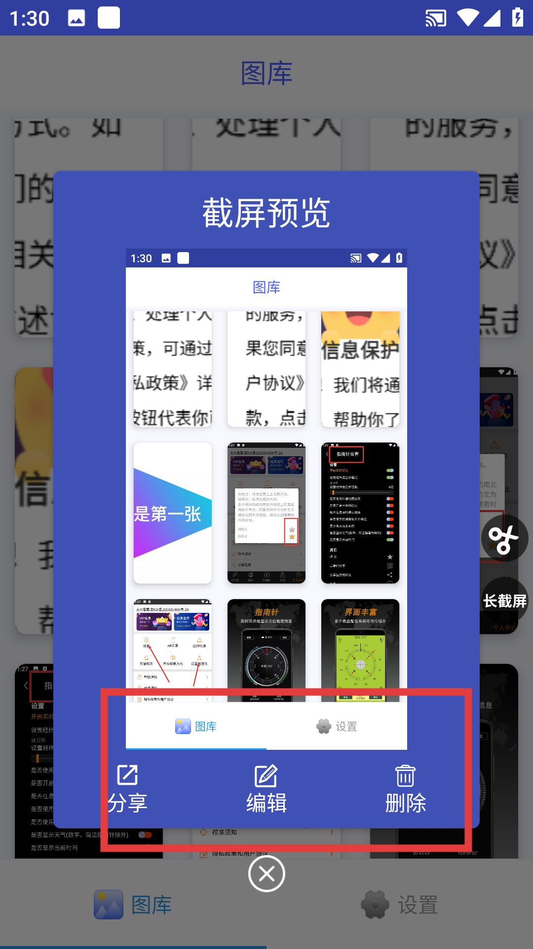 2、完成長截屏觸發(fā)后進入截屏預(yù)覽界面,底部有分享、編輯、刪除等功能按鈕,若對截屏效果滿意,可直接分享或刪除,若需調(diào)整點擊編輯進入下一步,靈活處理截屏成果。