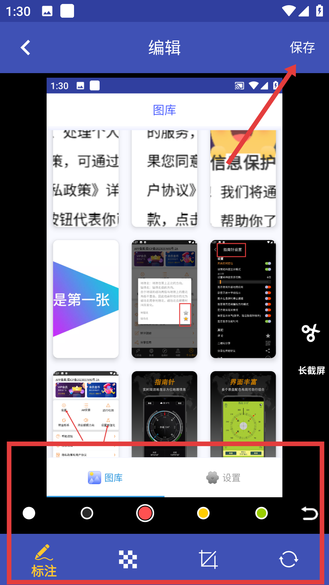 3、在編輯界面利用底部標(biāo)注等工具對截屏進行添加標(biāo)記、裁剪等操作,完成編輯后點擊右上角保存按鈕,即可將處理好的截屏保存到設(shè)備,方便后續(xù)查看、使用。