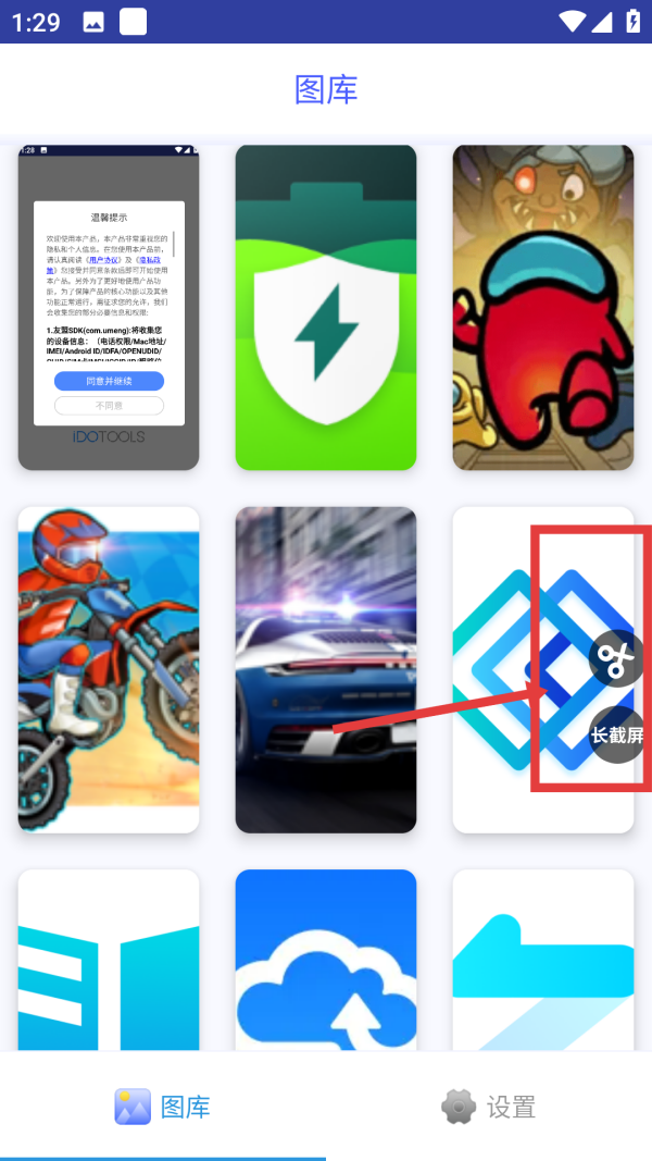 1、打開圖庫找到想要截屏的圖片,長按圖片或點擊圖片旁長截屏標(biāo)識,這一步是觸發(fā)長截屏操作的入口,通過選擇長截屏可對多張內(nèi)容進行連貫截取。