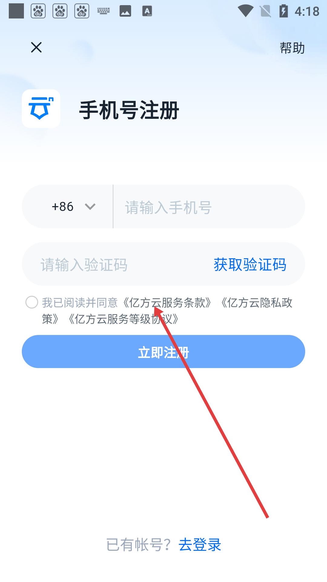 2、點擊注冊進入手機號注冊頁,輸手機號、獲取并填驗證碼,勾選協(xié)議后點立即注冊,完成賬號創(chuàng)建。