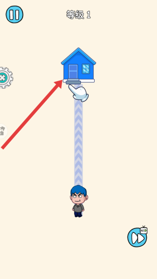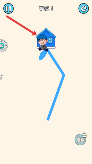 2、等級1關(guān)卡,看到藍色房子和下方小人,需通過畫線操作,為小人規(guī)劃安全路徑,讓其能到達房子處。