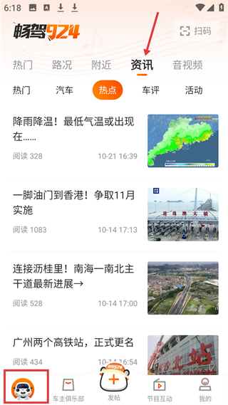 2、資訊板塊分熱點、車評等分類,推送降雨降溫、交通進展等資訊,為用戶提供及時信息,助力車主掌握出行動態(tài)。
