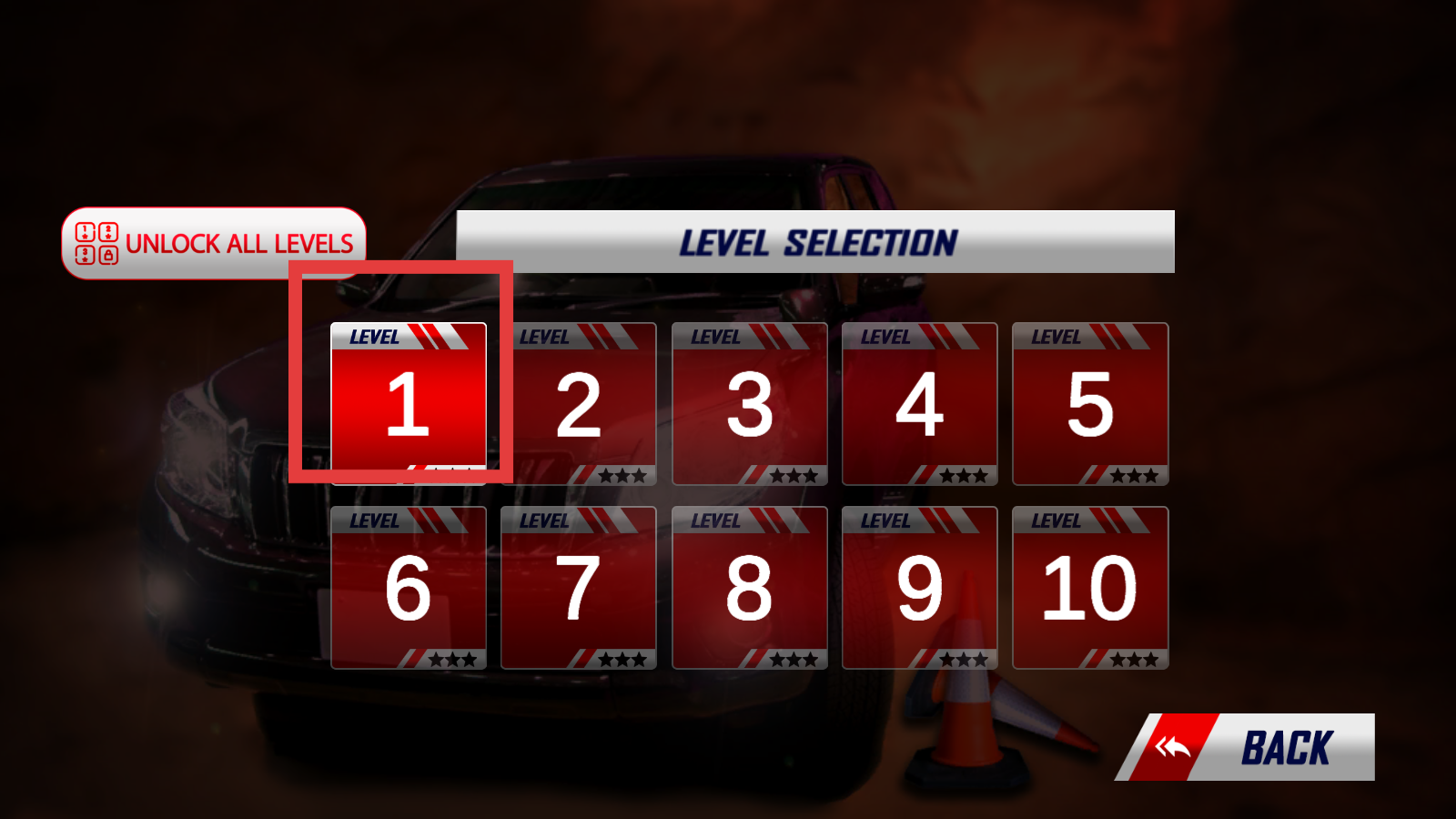 2、然后在關(guān)卡選擇界面里面,點擊想要挑戰(zhàn)的關(guān)卡如點擊數(shù)字1,進入對應(yīng)的停車任務(wù)場景。