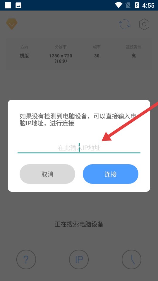1、連接電腦環(huán)節(jié)靈活若自動(dòng)搜索未發(fā)現(xiàn)設(shè)備,可在彈窗輸入框手動(dòng)錄入電腦IP地址,點(diǎn)擊連接按鈕完成配對(duì)。