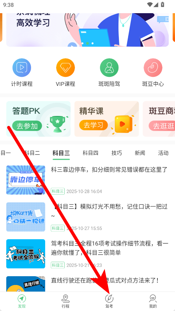 2、點駕考板塊,選科目看考試技巧、流程資訊,備戰(zhàn)理論考試。
