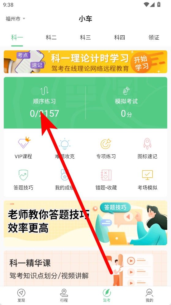 3、進科一界面點順序練習,按順序刷題,熟悉知識點積累答題經(jīng)驗。