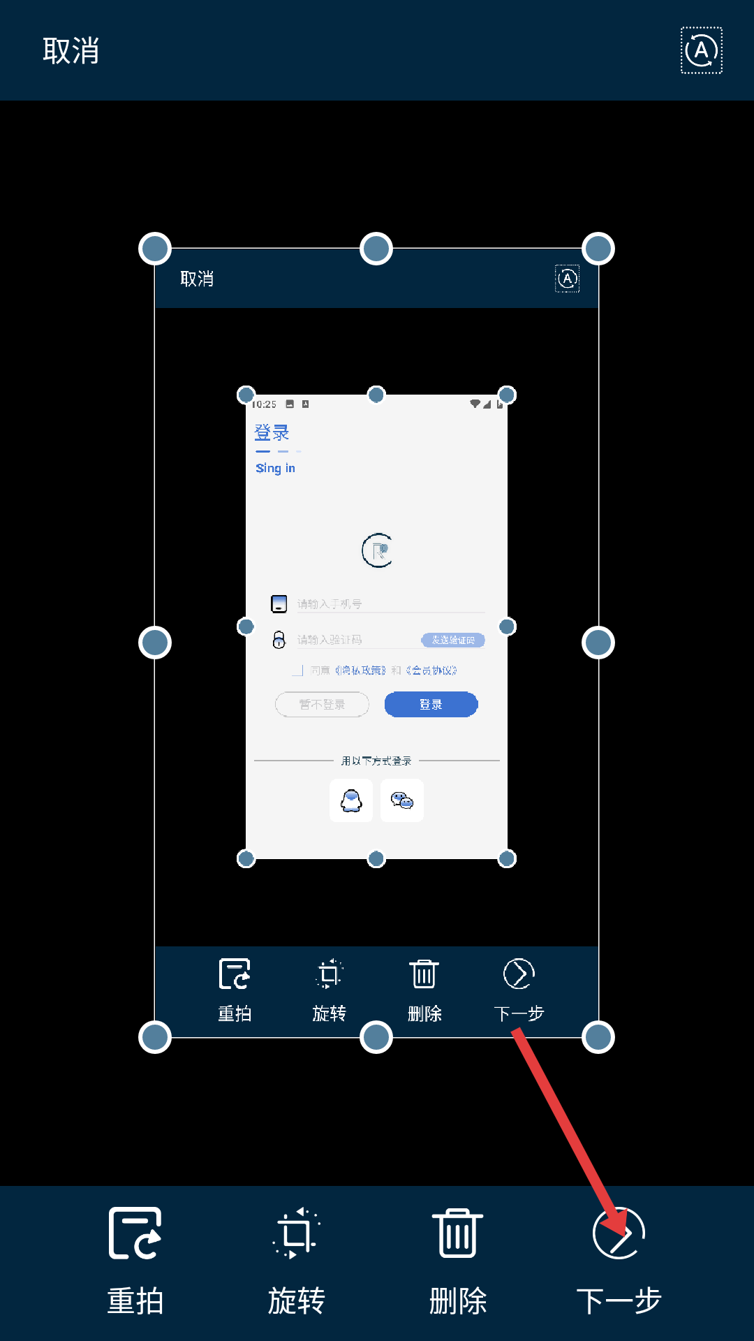 1、使用轉(zhuǎn)易俠掃描王拍攝或?qū)雸D片后,可利用重拍、旋轉(zhuǎn)等功能調(diào)整,確認圖片無誤點擊界面下方下一步進入后續(xù)操作流程,讓處理好的圖片進入導出環(huán)節(jié)。