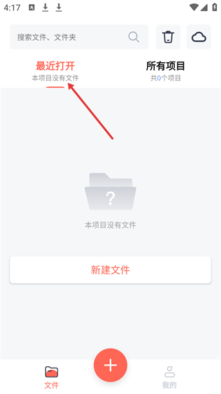 1、最近打開欄,顯示本項(xiàng)目無文件,可點(diǎn)擊新建文件創(chuàng)建新文件,滿足文件創(chuàng)建需求。