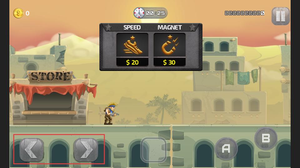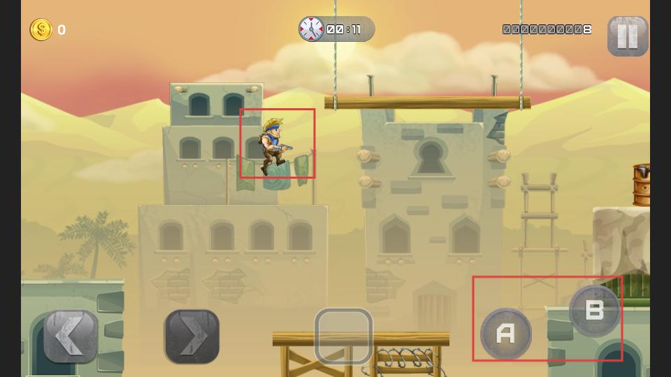 2、遇到障礙或需要跨越時,點(diǎn)擊A鍵讓角色跳躍,碰到敵人就按B鍵射擊,靈活操作應(yīng)對不同情況。
