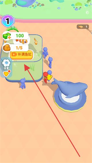 3、接著看到有補滿魚缸的提示,點擊相關按鈕,補充魚缸內(nèi)的魚,讓魚缸達到滿的狀態(tài)為后續(xù)經(jīng)營做準備。