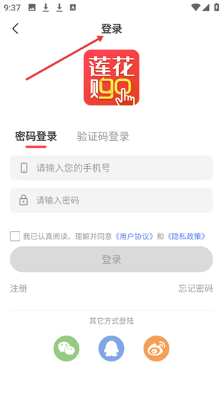 1、 登錄頁支持密碼、驗(yàn)證碼及微信等多方式登錄,需輸入手機(jī)號(hào)、密碼并勾選協(xié)議,還可注冊(cè)、找回密碼。