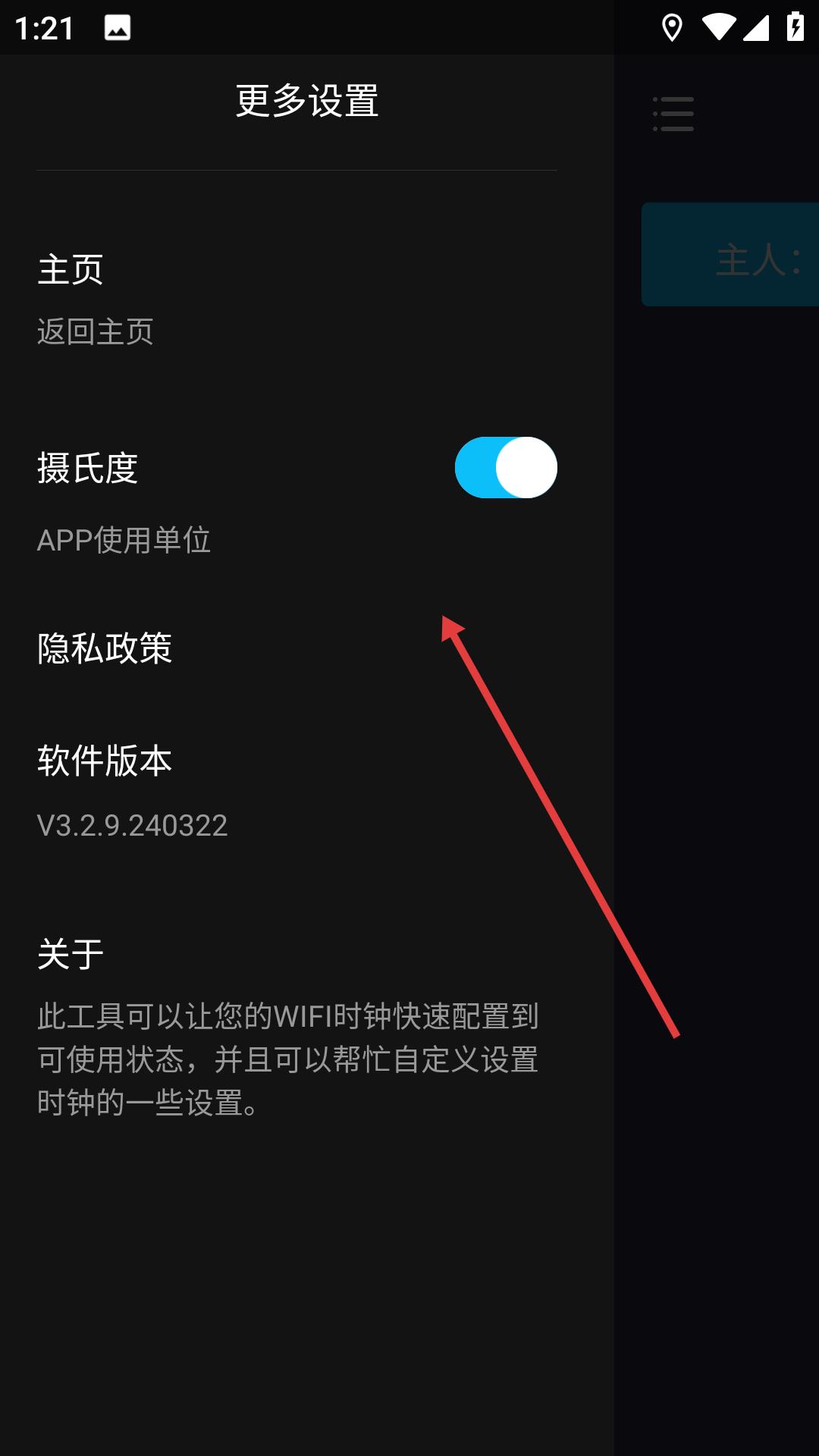 3、我的時鐘應(yīng)用的更多設(shè)置頁面,可設(shè)置APP使用單位為攝氏度,還能查看隱私政策和軟件版本等信息。