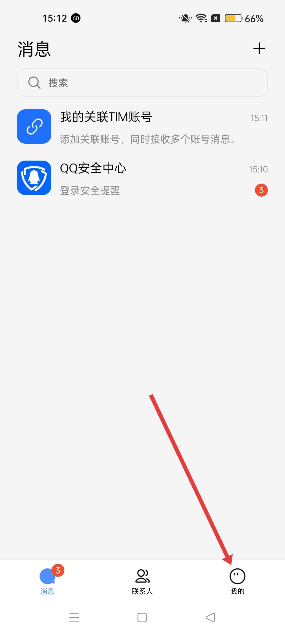 1、打開(kāi)TIM APP進(jìn)入消息頁(yè)面,點(diǎn)擊底部我的選項(xiàng),進(jìn)入個(gè)人中心頁(yè)面。