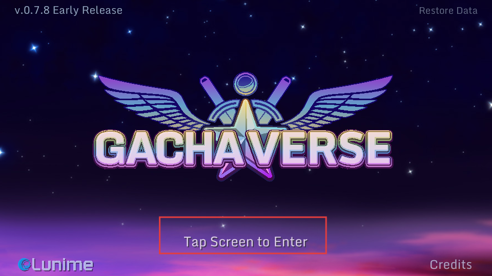 1、游戲主界面顯示Tap Screen to Enter,點擊屏幕即可進(jìn)入游戲,開啟在GachaVerse世界的冒險。