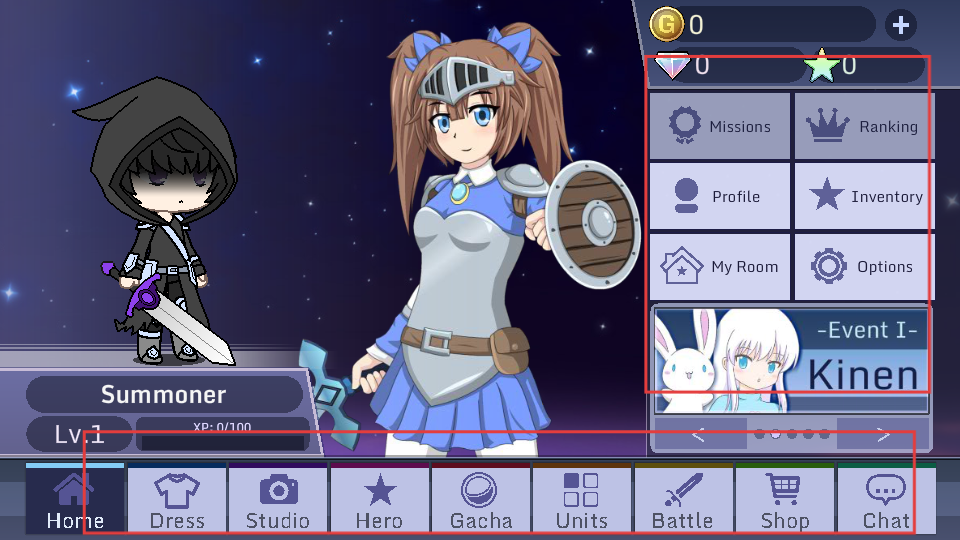 3、在主界面,有Missions、Ranking等功能選項,還有Home、Dress等模塊,可進(jìn)行任務(wù)、查看排名,或裝扮角色等操作。