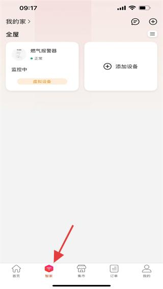 2、智能頁可查看燃氣報警器狀態(tài)正常監(jiān)控中,支持添加設(shè)備,便于管理家庭燃氣智能設(shè)備。
