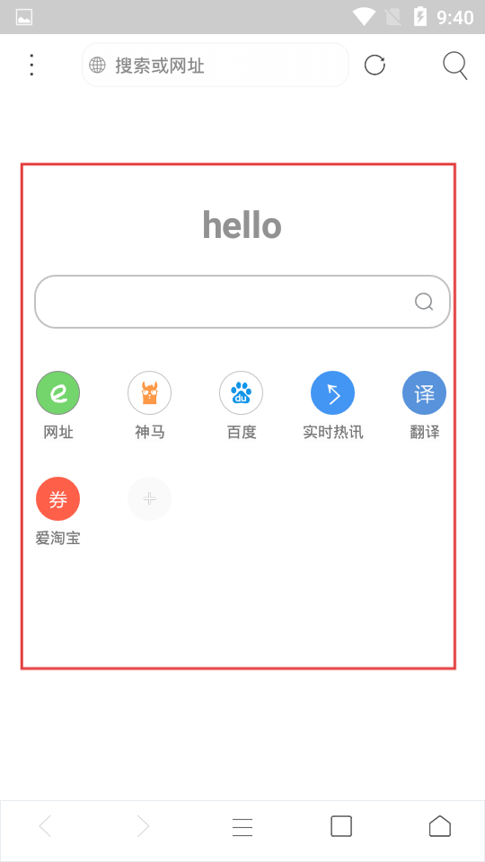 1、首頁上方搜索欄可輸入網(wǎng)址或關(guān)鍵詞進行搜索,下方排列著多個快捷入口,點擊能快速進入對應(yīng)頁面,此外還有實時熱訊等特色入口,方便用戶快速獲取資訊等操作。