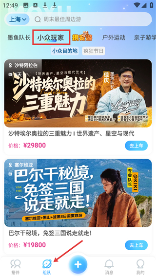 2、小眾玩家類,推出沙特埃爾奧拉、巴爾干秘境等小眾旅行,專業(yè)隊長帶隊,能感受獨特風光與文化。