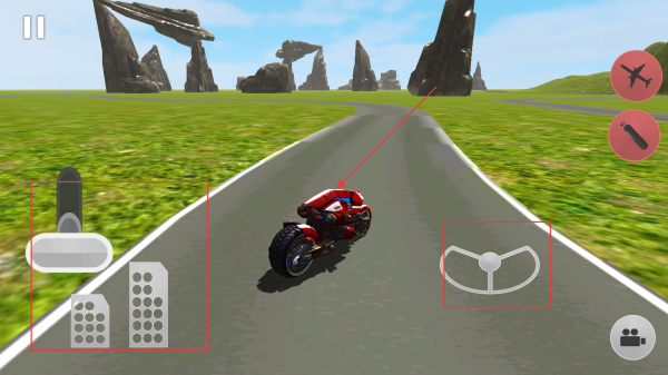 3、玩家可以通過屏幕上圖標標記的操作按鈕,可以控制摩托車進行左右移動、加速駕駛等操作。