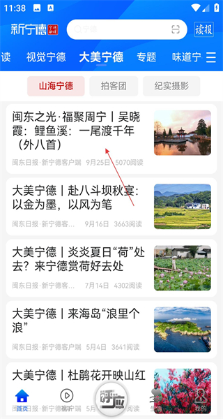 2、切換到大美寧德板塊的山海寧德,瀏覽閩東之光福聚周寧資訊,了解鯉魚(yú)溪的文化故事,推進(jìn)多板塊資訊瀏覽的流程,關(guān)注寧德山海文化動(dòng)態(tài)。