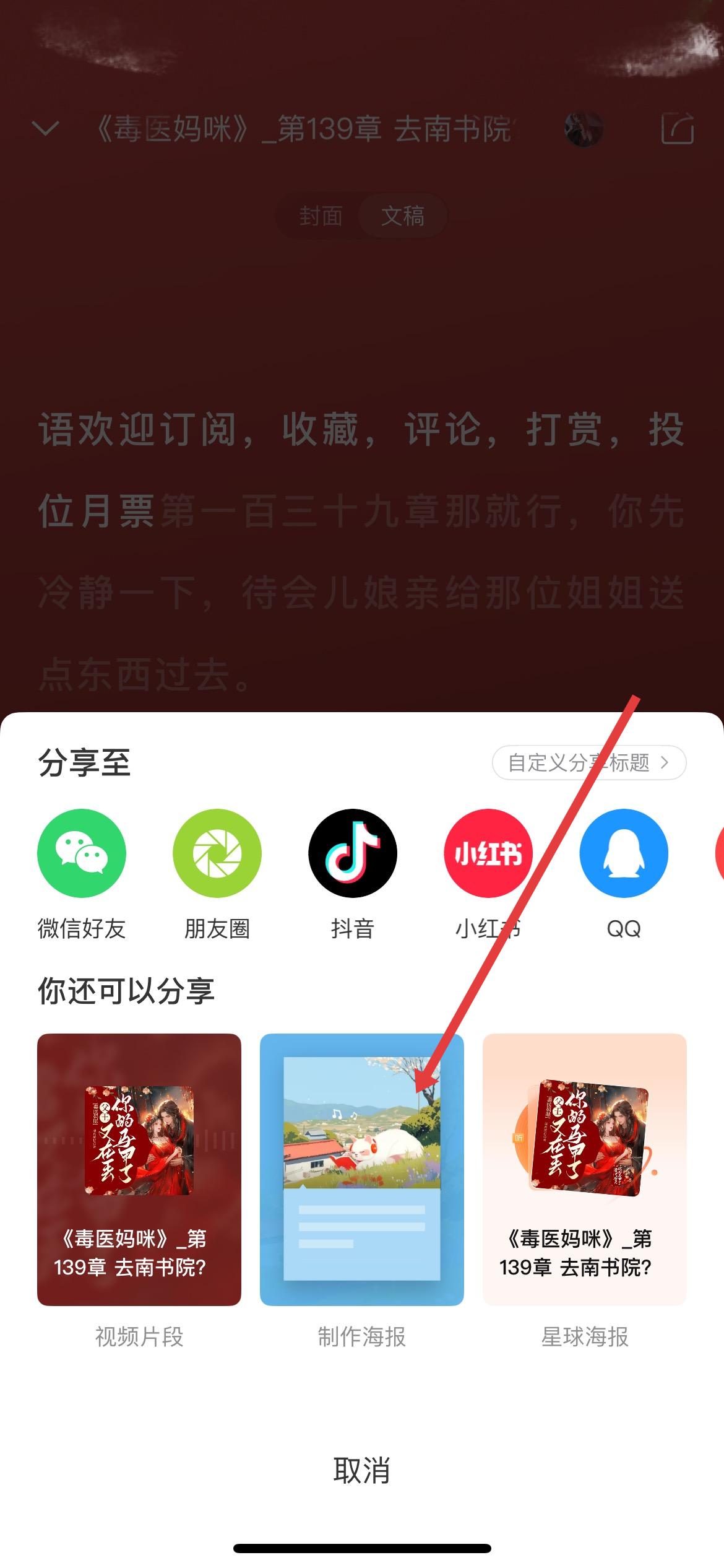 3、點擊分享后,會彈出分享選項界面,有微信好友、朋友圈等分享平臺,還有制作海報等分享形式,若選擇制作海報,點擊制作海報選項。