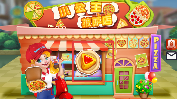 1、玩家在游戲主界面,點(diǎn)擊帶有披薩圖案的開始按鈕,進(jìn)入我的小公主披薩店游戲,開啟制作披薩的體驗(yàn)。