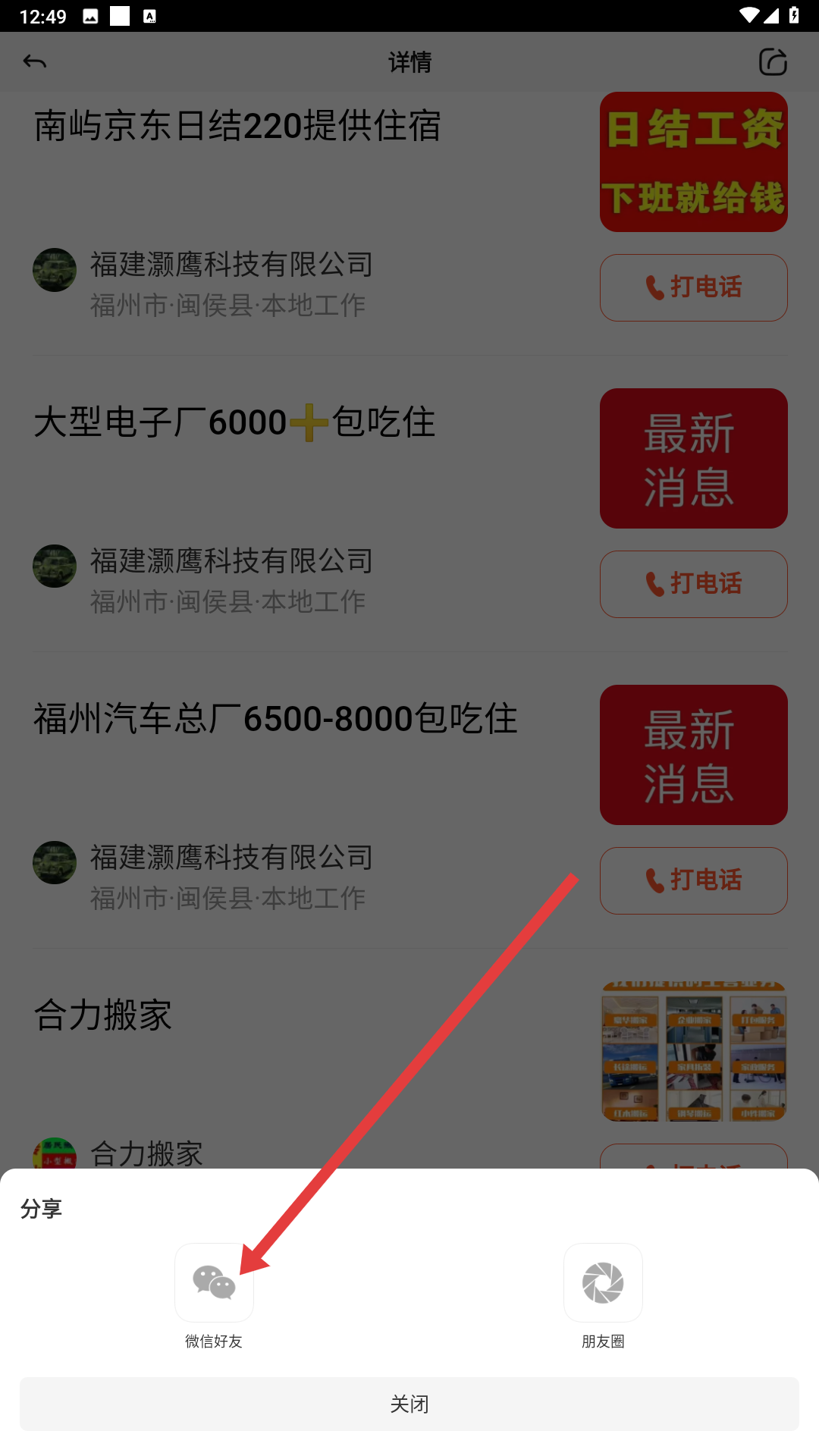 4、若想分享該房源,可點(diǎn)擊分享按鈕,選擇微信好友等分享平臺(tái),將房源信息分享給他人。